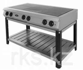 | г. нетто 1400x830x900, 185 кг, 6 чугунных ТЭНовых конфорок, 295х415 мм, 6 4-х позиционных переключателей, конфорки 295х415 мм, 18 кВт 380В, полностью из н/с, подставка с полкой полностью разборная, разборная конструкция плиты и подставки, исполнение - полностью из нержавеющей стали, г.брутто 1550х950х450, 215 кг |