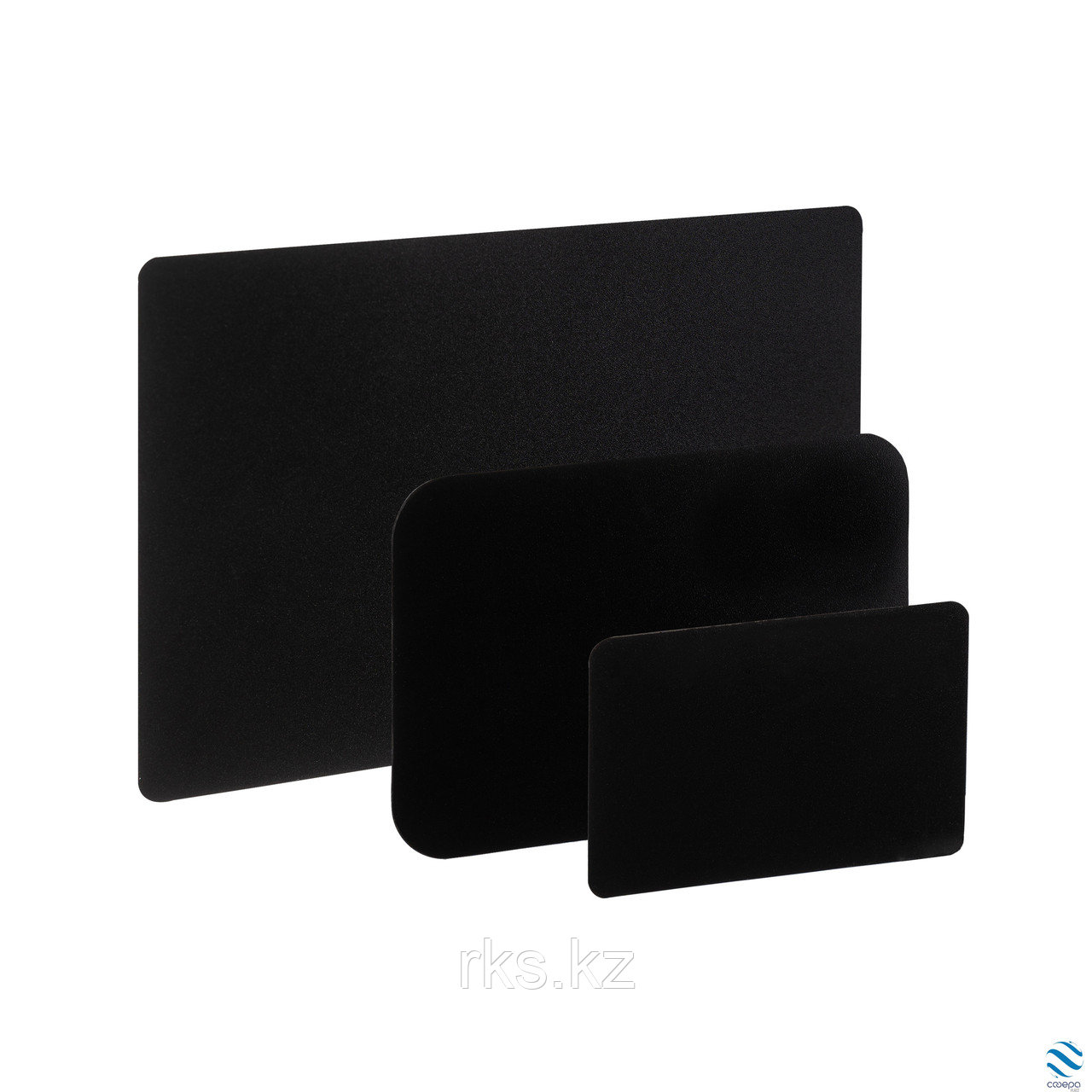 Черная табличка в современной торговле стала очень распространена. Используется для нанесения цены и(или) информации о товаре с помощью мелового маркера. Углы меловой таблички закруглены.